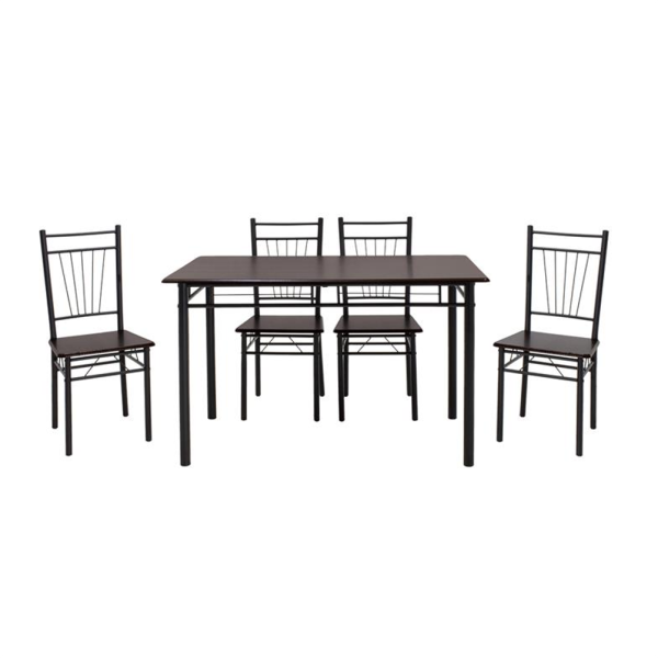 JUEGO DE COMEDOR NIZA – Mesa cuadrada Nogal oscuro – 4 Sillas con cojín suave – Hermoso acabado brillante –